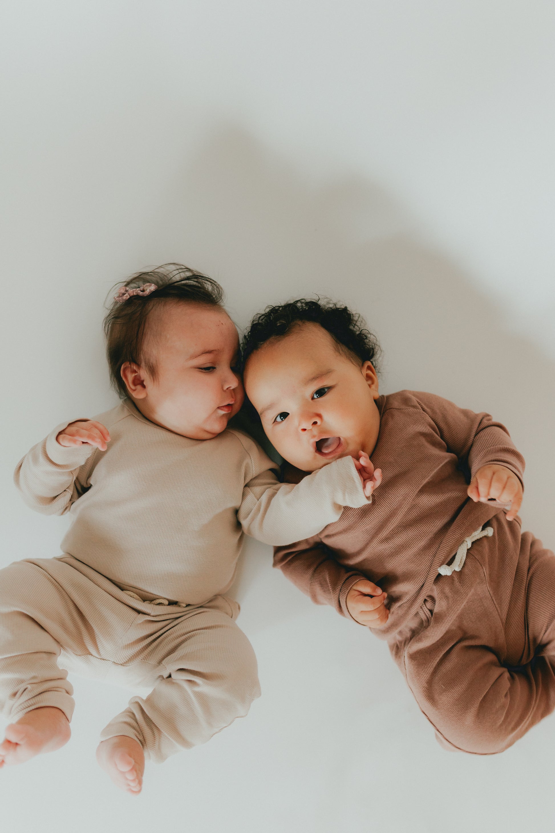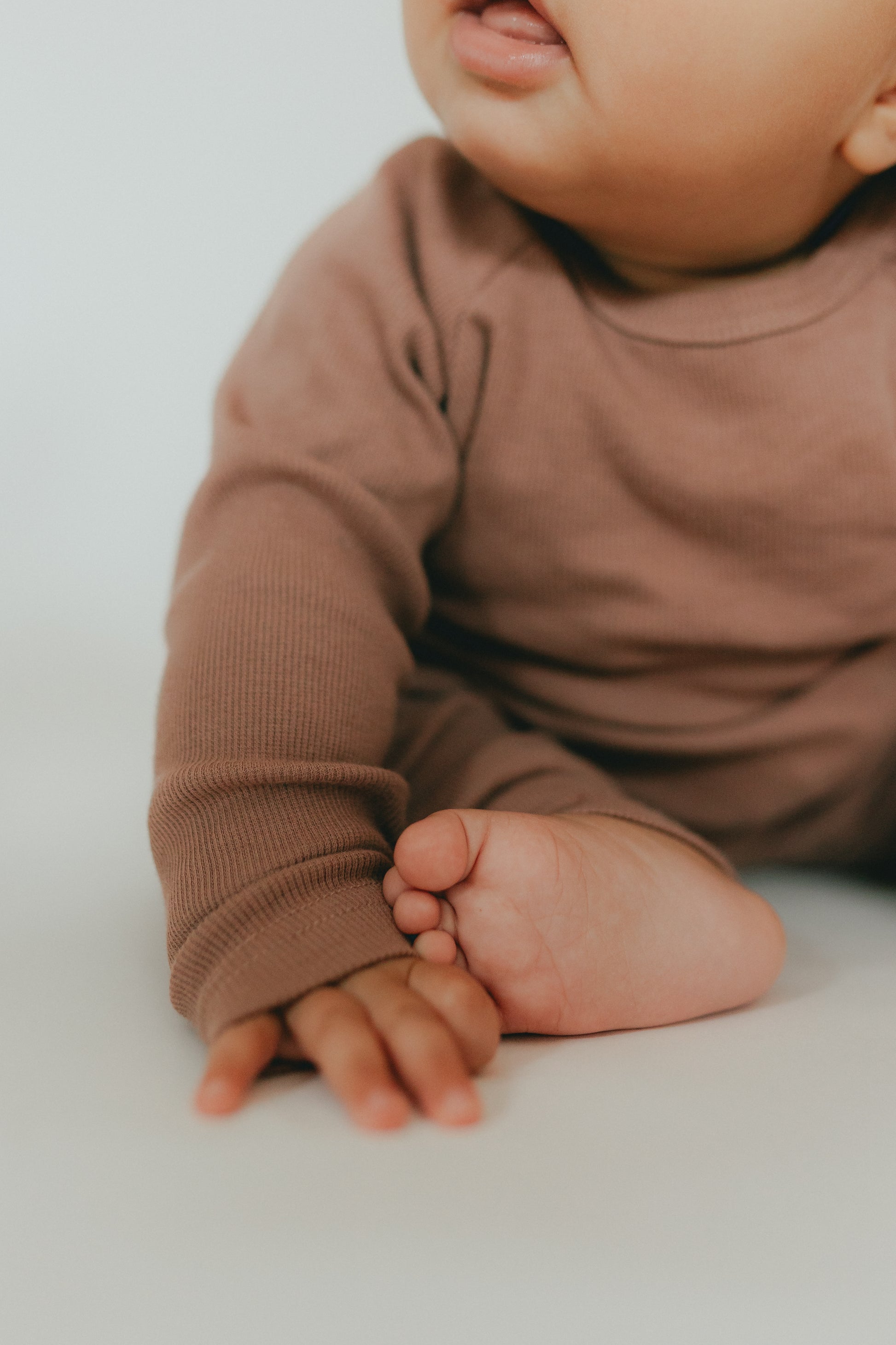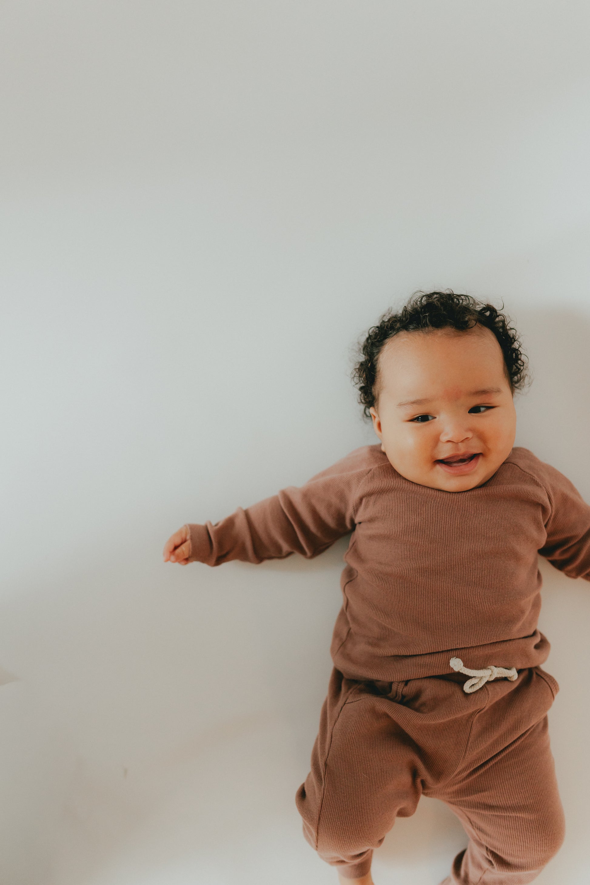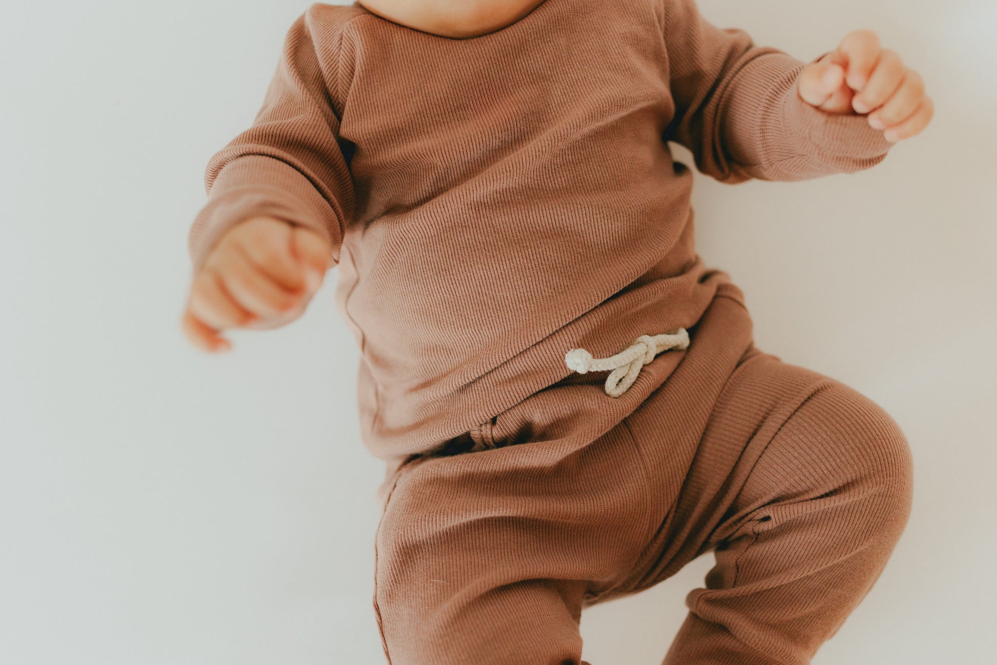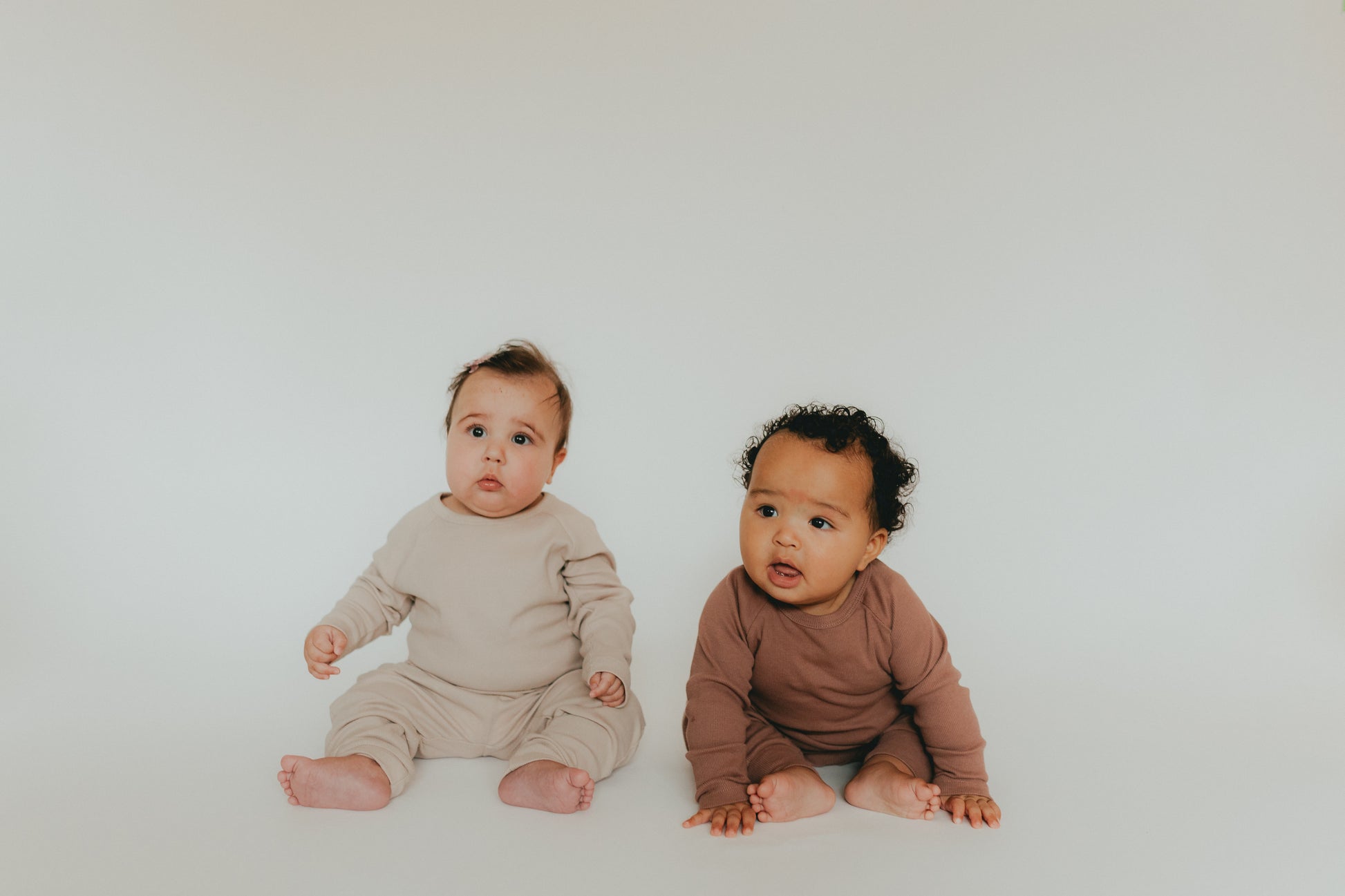 Made from organic cotton, this baby lounge wear will keep your little one cozy and comfortable. Perfect for a coffee date with mom or napping on the go, the ribbed design adds extra comfort. Treat your baby to the softness and sustainability of our cozy set. Includes top and bottom.